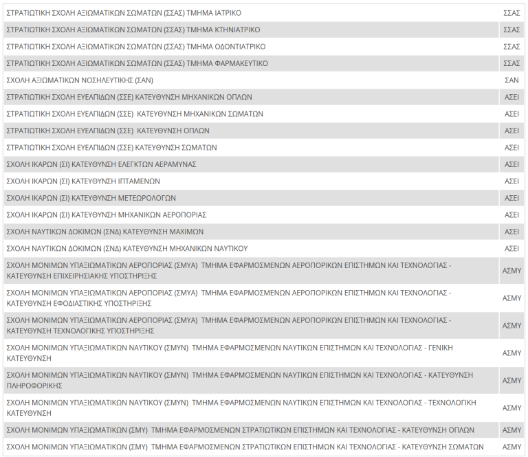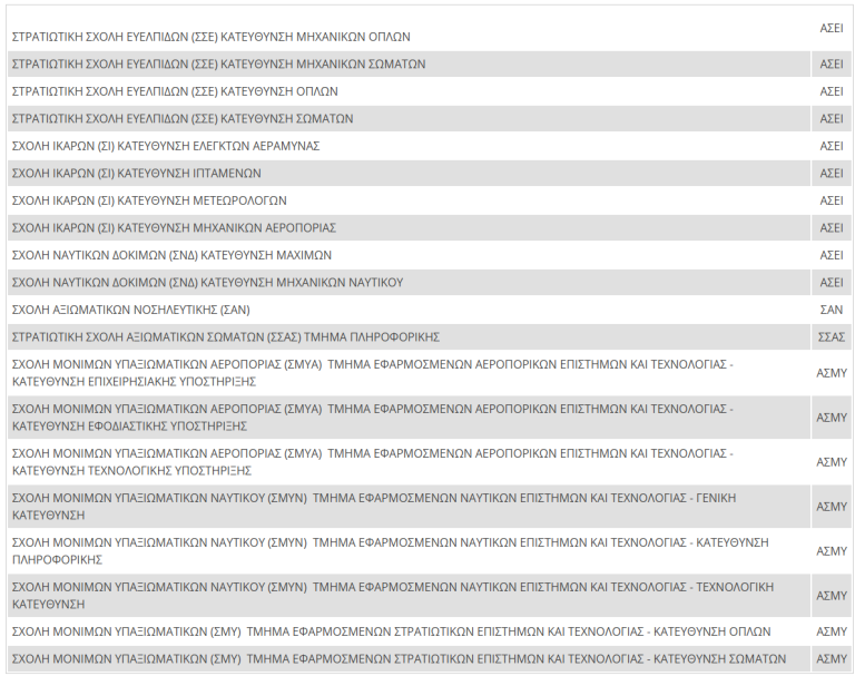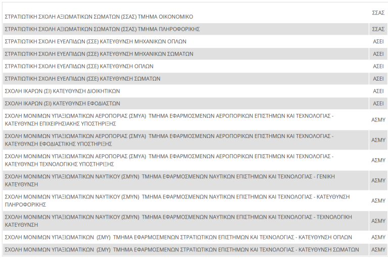 4. Στο Επιστημονικό Πεδίο ΕΠΙΣΤΗΜΩΝ ΟΙΚΟΝΟΜΙΑΣ ΚΑΙ ΠΛΗΡΟΦΟΡΙΚΗΣ υπό τον τίτλο «ΣΤΡΑΤΙΩΤΙΚΕΣ ΣΧΟΛΕΣ», θα βρίσκονται οι κάτωθι: