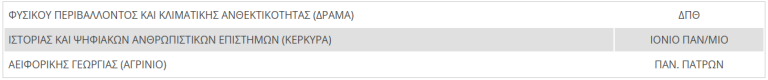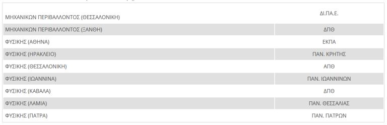 υπό τον τίτλο «ΠΑΝΕΠΙΣΤΗΜΙΑ», προστίθενται τα Τμήματα: