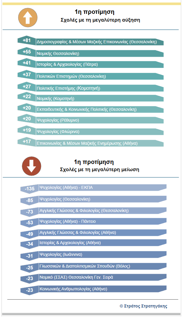 Οι δημοφιλέστερες σχολές του 1ου Πεδίου το 2025.