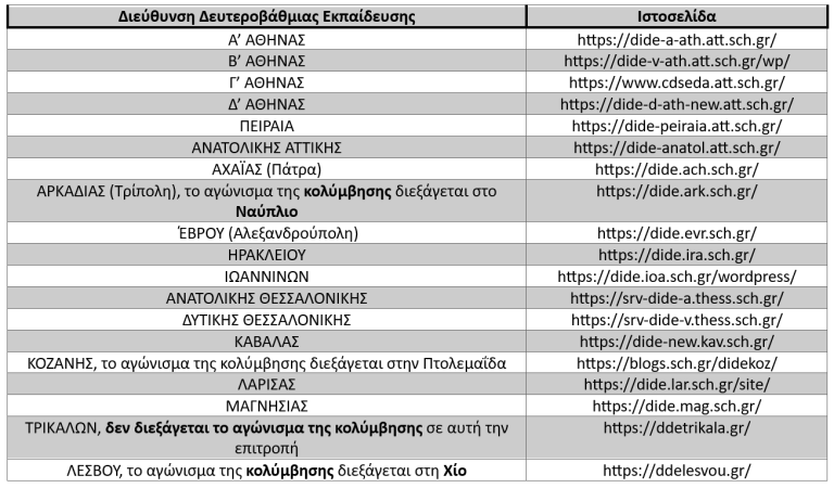 Οι επιτροπές υγειονομικής εξέτασης και πρακτικής δοκιμασίας θα λειτουργήσουν στις έδρες των παρακάτω Διευθύνσεων Δευτεροβάθμιας Εκπαίδευσης και οι χώροι διεξαγωγής των αγωνισμάτων όπως και το αναλυτικό πρόγραμμα κάθε επιτροπής, θα ανακοινωθούν από τις Διευθύνσεις Δευτεροβάθμιας Εκπαίδευσης και θα αναρτηθούν στις αντίστοιχες ιστοσελίδες κάθε Διεύθυνσης.