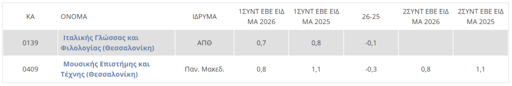 Τα Τμήματα που άλλαξαν συντελεστή ΕΒΕ για τις Πανελλαδικές 2026 βλέπετε στον πίνακα.